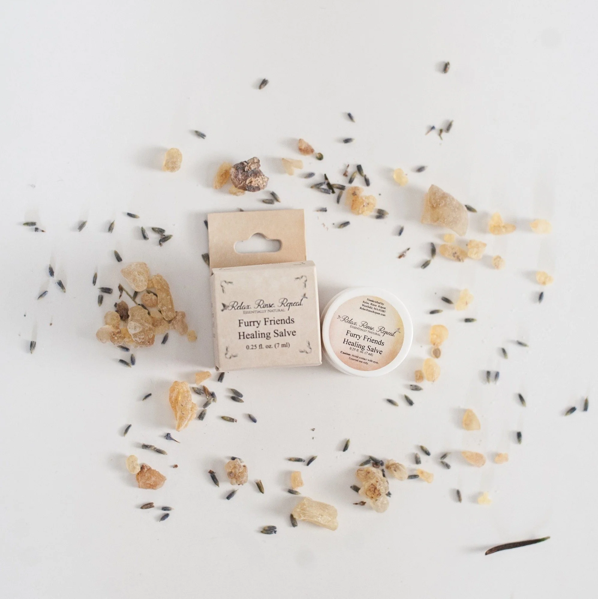 Take care of your furry friends with our all-natural healing pet salve! Scratches, cuts, and cracked noses and elbows are just some of the amazing uses of this product. This salve is great for both dogs and cats. Save yourself those minor trips to the vet and keep this in your pet's medicine cabinet instead!